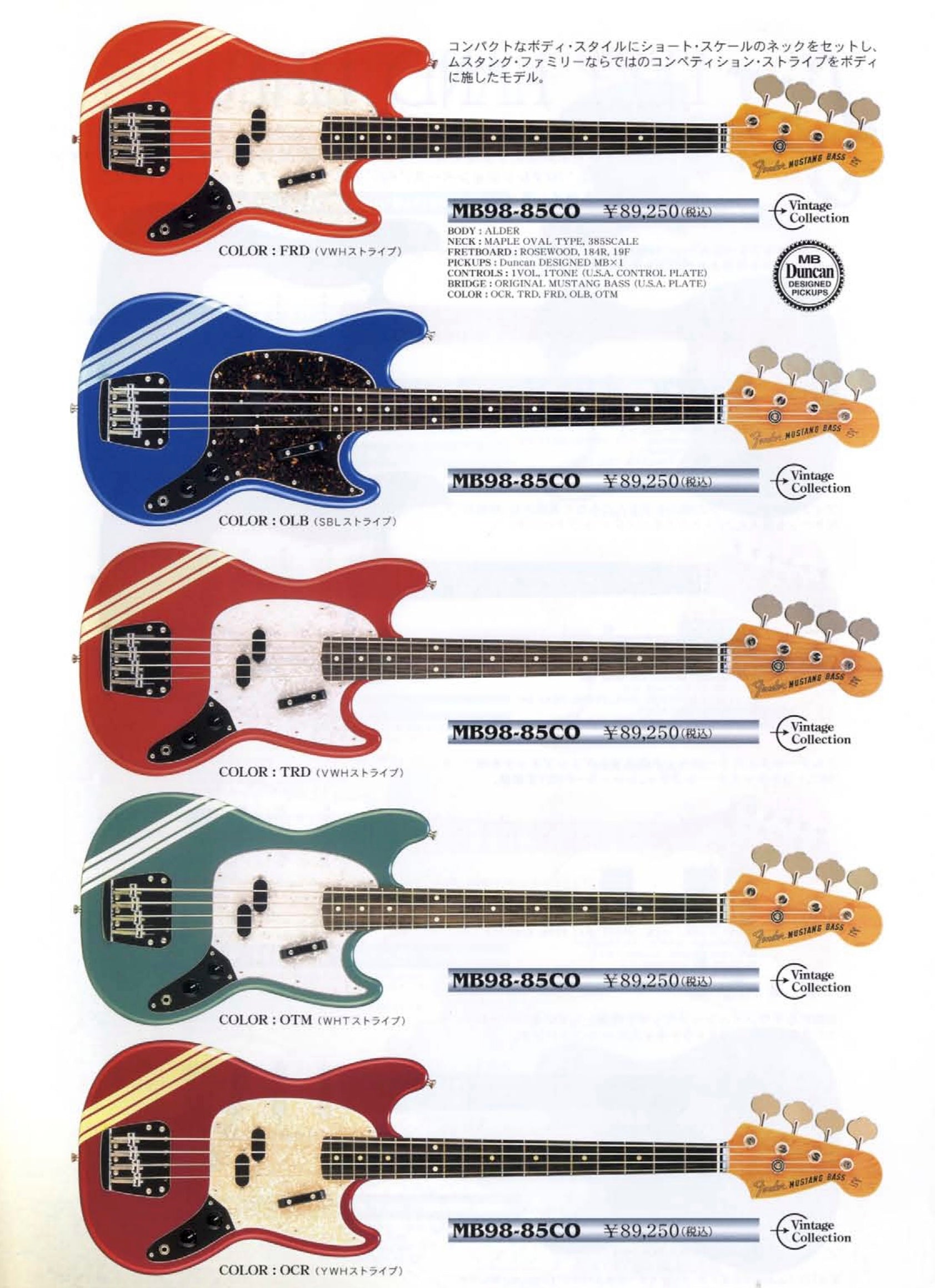 1999-2002 Fender Japan MB98-85CO MIJ '69 Reissue Mustang Bass in Ocean Turquoise Metallic